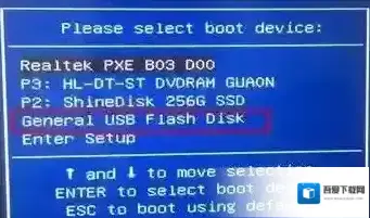 4、保存设置后自动重启进入LOGO画面时,一直按重启按F12/F7/ESC快捷键,在启动菜单中选择USB启动,如下图所示;
