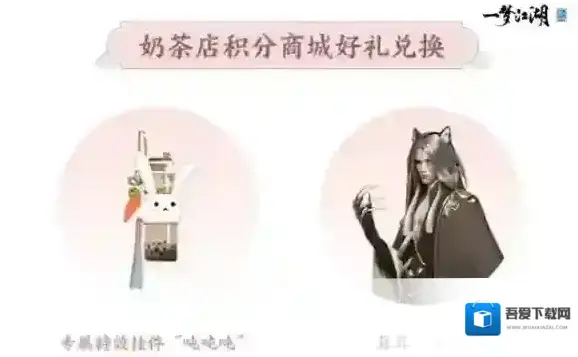 在一梦江湖茶武汉店的营业期间,少侠们在奶茶店消费饮品即可获得积分,可在积分商城兑换限定好礼,专属特效挂件“吨吨吨”和茸耳·山灰等精美周边等你带回家,现场拍照打卡或参与店铺相关活动,还可以领取专属城市印章等惊喜礼物。