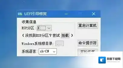 4、指定一下ESP分区的盘符,如果没有盘符可以点击挂载,然后选择安装Win10的根目录如C盘,点击修复即可。