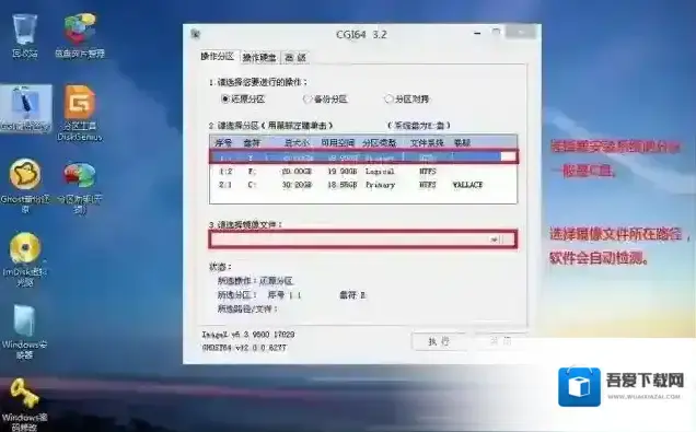 第五部:安装Win10系统1、打开CGI备份还原,找到你的Win7或Win10系统安装镜象,然后安装到C盘就可以了!