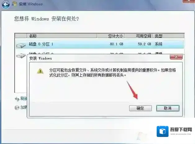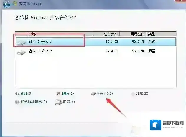 15.点击确定开始格式化,格式化完成选择分区1,点击下一步开始系统安装