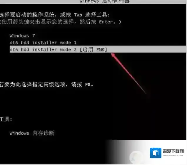 6.重启后出现以下画面,移动光标键,选择nt6 hdd installer mode 2 [启用 EMS]敲回车进行下一步