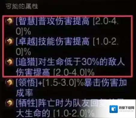 7、在副本和野外刷野中,法师的话主要风火流,主要靠技能进行输出,那么在业火套里面可以选择洗出普攻伤害加成和技能伤害提和对生命低于30%的敌人伤害提高,方便后续的收割,保证一套技能解决,打连击更轻松,提高刷野效率。