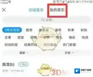 6、在这个页面中,可以选择正版音乐也可以自己上传音乐,单击“我的音乐”选项