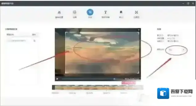 5、在窗口右方设置裁剪比例,一般选择16:9的裁剪比例,在视频预览框画出除去水印部分所能画出的最大区域。