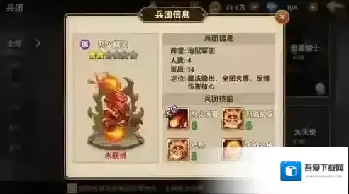 烈火精灵(魔)和歌革(魔)组成了地狱兵团强大的魔法组合,烈火精灵AOE能力和能给全团加上火盾BUFF的特殊技能奠定了他在地狱兵团的地位。歌革是一个沉迷输出的强力魔法兵团,所有技能都能造成大量的魔法伤害。所以就算你没有凑齐所有地狱军团的兵团,这两个魔法兵团也可以放在其他兵团里作为强力输出。