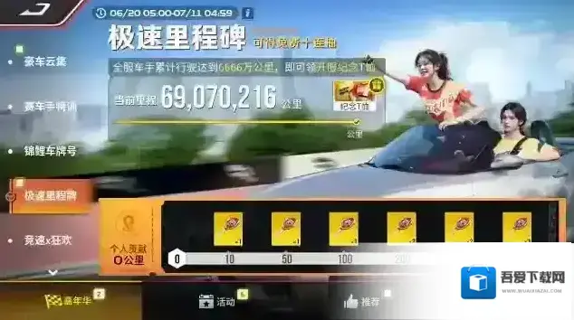 ⑦极速里程碑:车手们一起助力完成进度里程碑,累计行驶达到6666万公里,可以获得开服纪念T恤。完成个人贡献进度,还可以累计获得钻石车钥*10(十连抽)。