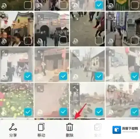 5、切换到云照片界面后,长按云照片,然后勾选需要删除的照片,点击底部的删除;