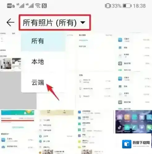 4、在所有照片中点击顶部的所有,选择下方的云端的选项进行切换;
