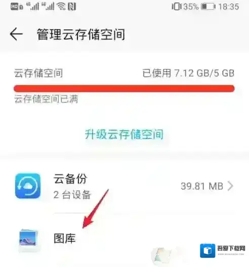 二、删除云照片1、清理云备份后,也可以删除无用的云照片来释放空间。在管理云存储空间界面,点击图库的选项进入;