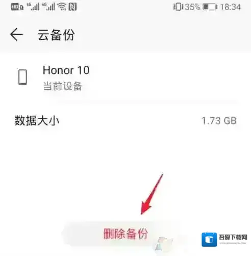 7、点击进入云备份详情界面后,选择底部的删除备份,一般可以选择较早的备份进行删除;