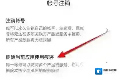 5、在账号注销页面里点击“删除当前应用使用痕迹”。