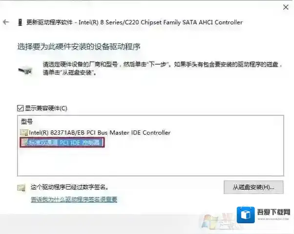 5、这里会显示多个兼容硬件,我们要选择“标准双通道 PCI IDE控制器”,点击下一步进行安装,完成后重启系统即可,如图所示: