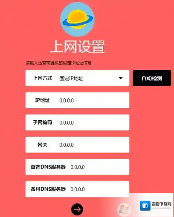 “固定IP地址”上网,有些路由器上叫做:静态IP。开通宽带时,运营商提供了一个IP地址、子网掩码、网关、DNS服务器地址。