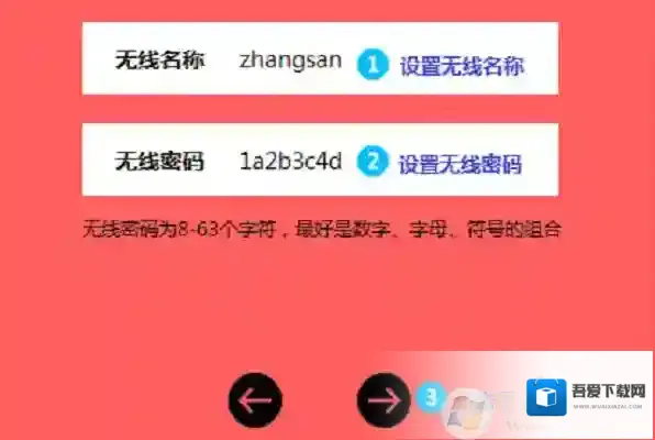 在“无线名称”中设置信号名称(WiFi名称)– “无线密码”中设置WiFi密码– 点击“确定”。