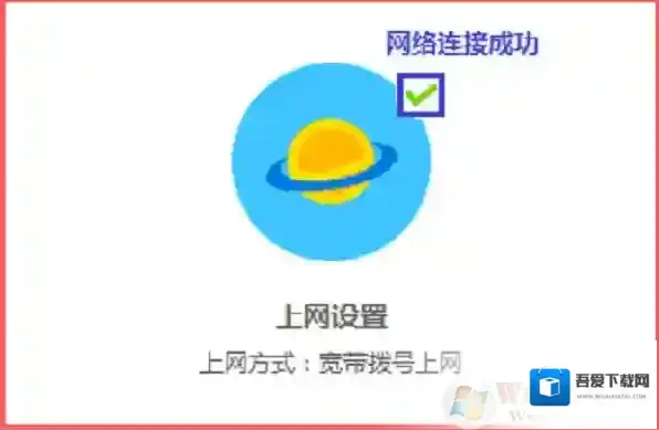 在路由器的设置界面,点击设置完成后,进入路由器管理界面,在“常用设置”– “上网设置”中,如在上网设置图标上显示,即表示网络连接成功。
