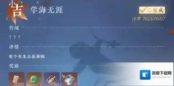 3、对话结束之后,我们的奇遇任务学海无涯也就完成了;