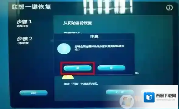 确认执行恢复的提示,确认后点击是,开始恢复