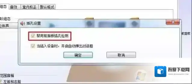 4、将经用前置面板插口选项去掉勾选