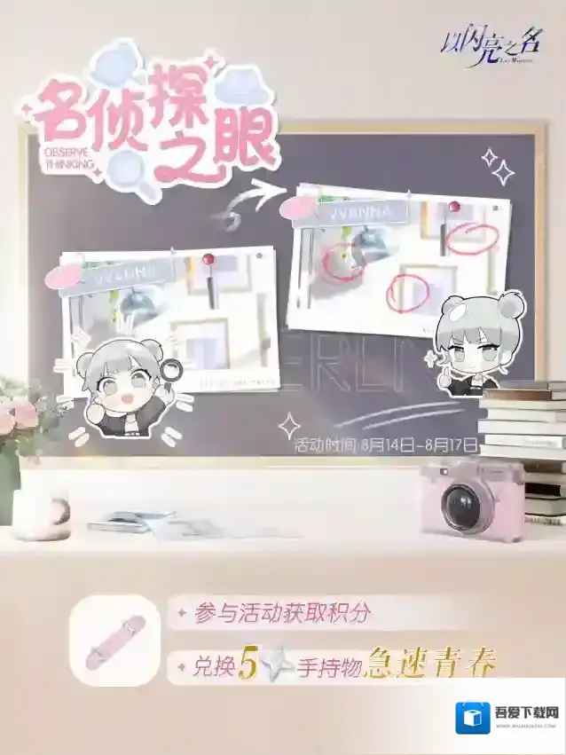 活动期间,参与日程活动提高活跃度可以获得调查次数,每天最多获得3次。调查次数在活动期间不会清空,记得及时使用哦~消耗调查次数可以开始调查,在3分钟的调查限时内标记出下方图片与上方的所有不同之处即可完成调查。完成之后根据调查用时会获得不同的评价奖励,累计获得9次完美评价还可额外获得限定称号奖励!