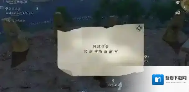 按照顺序对“变徵(zhi)”–“徵”–“变徵”–“角”–“商”对石块依次使用技能风起云涌,需要我们从正面吹,要不然出现不了,然后就可以开启宝箱。