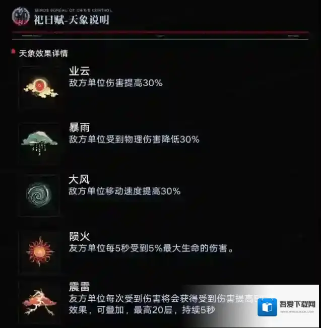 ■玩法说明:使徒降临带来诸多灾厄,在异象出现的区域,天象会发生特殊的变化,对战斗带来不同的影响。