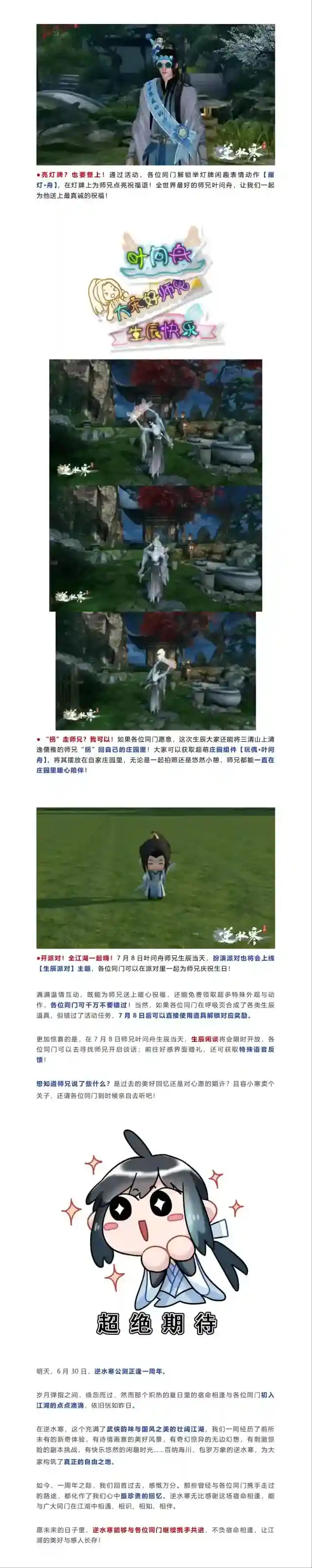 关于逆水寒“五一假期无限延长”的决定通知 尊敬的同门们,大家好!五一假期即将结束,为了回馈广大同门对逆水寒的持续支持与热爱,我们决定推出“五一假期无限延长”特别活动。以下是此次活动的详细安排和说明:上线逆水寒开启整活之旅一键延长假期继续享受节日欢乐一...2025-10-22 -