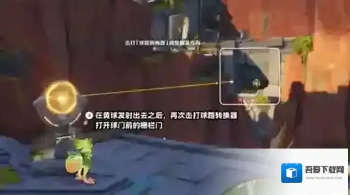 4、第三处:攻击球路转换器使其面朝黄色球门,然后吸取篮球调整弹道发射,射出后再次攻击球路转换器