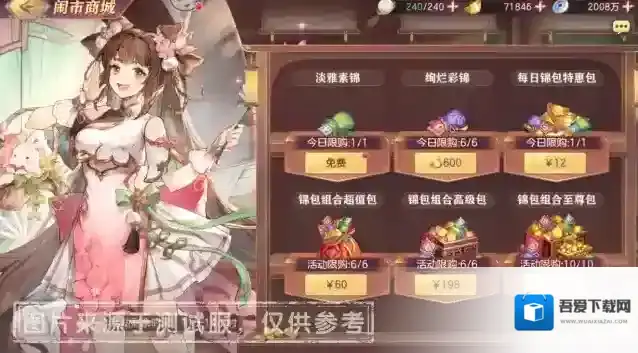 活动期间,闹市商城限时开放,小将军可在商城内进行锦包购买,商城内锦包出售如下: