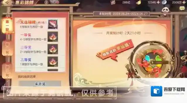 活动期间共开启3期惠彩锦鲤,每期活动第4天12:00前皆可获取「锦鲤号码」,并于12:00后公布当期「锦鲤号码」,小将军们均有机会成为「天选锦鲤」!
