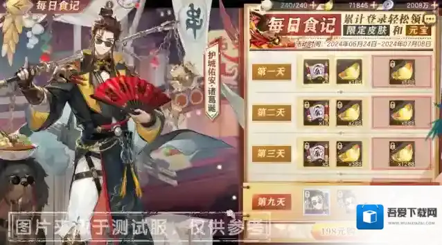 绸缎礼包:内含「绸缎*90,元宝*980」,售价98元,活动期间限购1次。