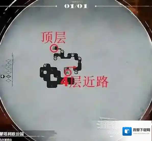 5层地图中间沿着梯Z继续往上爬可以打开第4层的一个近路,回到5层中间爬地图右边的狗洞走到地图左上角,通过左上角的梯z可以直接爬到2层的左上角。