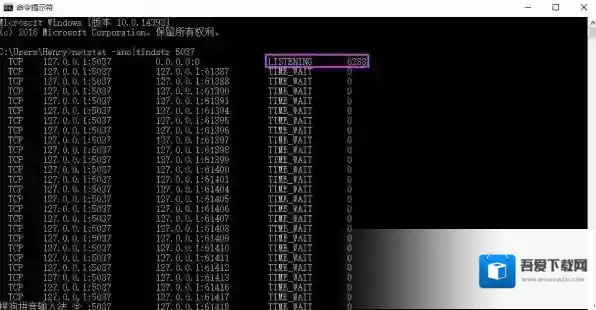 3、等待输出结果展示完成后,我们找到所有标有“LISTENING”所有行,记住结尾数字;