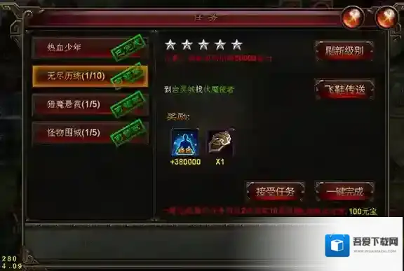 ②每日任务:前期后期主要经验获得之一,此类任务出现的环数略多,还能获得丰富的经验和绑定元宝