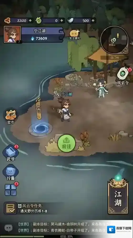 5、点击右侧的江湖按钮可以开始历练关卡,完成历练关卡能获得丰富的养成材料。