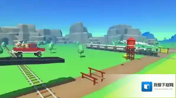 1、控红色卡车,在农场道路行驶,撞破栅栏,吃黄色钻石,攒数量。