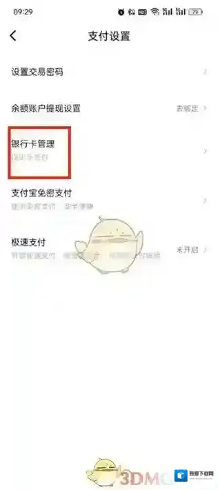 4、之后在支付设置的页面中,我们可以设置不同的支付功能,在这里点击银行卡管理;