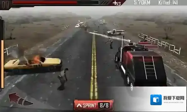 戮尸之路是一款以僵尸为题材的动作射击类作品,采用3D引擎制作,完美融合动作射击与赛车竞速玩法,玩家需驾驶赛车冲出僵尸群,行驶中可利用车上装备的机枪和火箭榴弹扫射僵尸,同时需注意擦边消灭挂在车旁的僵尸,避免正面撞击其他车辆导致速度减缓或游戏失败,在刺激的逃亡中体验双重玩法的爽感。