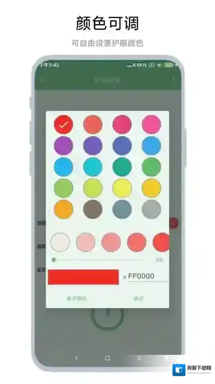 这是一个可以设置屏幕保护色的APP。可以快速设置屏幕保护色,从而达到保护眼睛和减缓疲劳的效果。软件支持用户设置不同的保护色,也可以自定义保护色,自定义透明读,也可以实现在不同的时间段显示不同的保护色。
