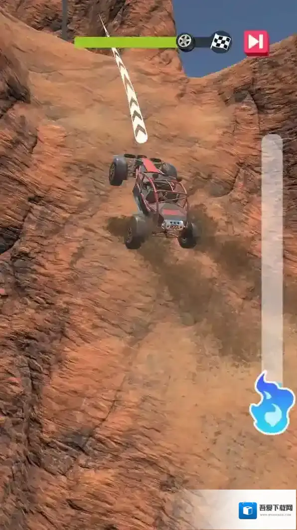 2、硬核操控挑战:触屏调节四驱模式,滑动屏幕控制悬挂软硬,面对交叉轴需精准分配动力,新手可通过渐进式关卡掌握”油门=攀爬力”操控逻辑。