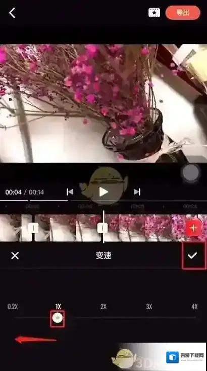 7、播放查看效果,若没有其他问题,点击右上角“导出”按钮即可完成视频慢动作的操作步骤。