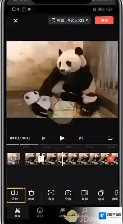 2、导入完成之后,点击底部栏中的分割,可以根据自身删除多余的视频。