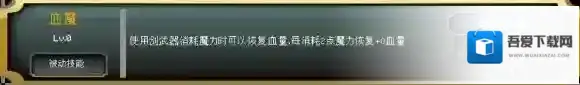 血魔:施放剑类主动技能时根据消耗的魔力值恢复血量