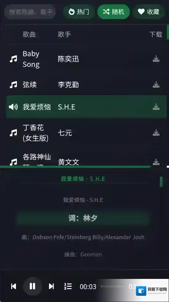4、点击歌曲后面的收藏按钮可以收藏音乐。