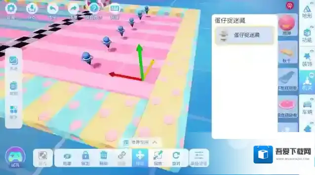 2、拖出捉迷藏组件,即可在地图任意位置设置藏身点,同时可以设置多个藏身点,蛋仔将随机出现在设置好的藏身点之一;