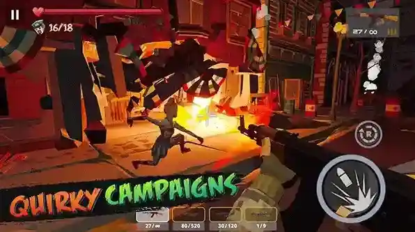 4、卡通化视觉表现,以轻松画风呈现紧张刺激的僵尸题材,降低恐怖元素适合更多玩家。