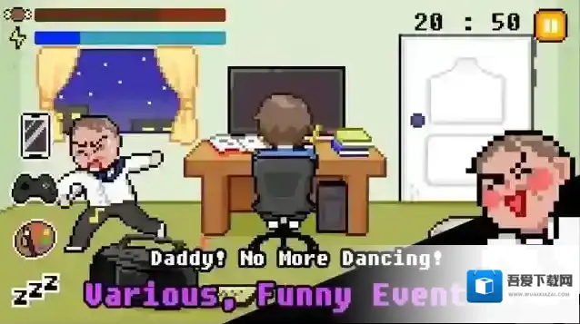2、双数值管理系统:实时监控不断变化的压力值(玩游戏过久会升高)与饥饿值(时间推移会上升),玩家需精准平衡学习伪装与娱乐需求。