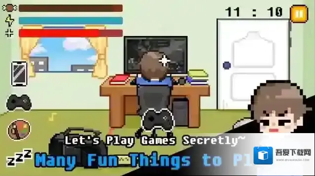 1、趣味伪装玩法:玩家需要在家长严密监视下巧妙隐藏游戏行为,通过快速切换界面(从游戏切回书本)等精细操作,躲避突如其来的检查。