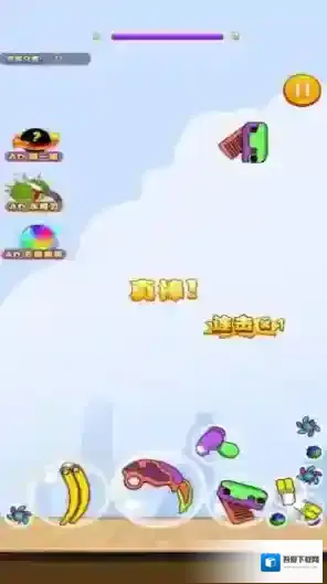 2、无尽挑战模式,水果会持续加速下落。比拼谁能坚持最久,创造最高分数记录,登上全球排行榜。
