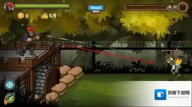 3、“防御阵地”,利用武器(手枪、炸弹),阻止多波僵尸靠近堡垒,守护生存区域。